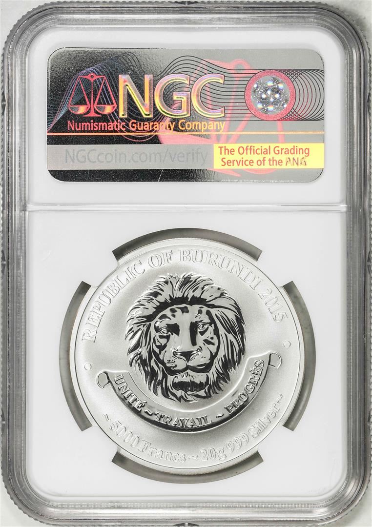 One 2015 Burundi 5000 Francs History of Aviation De Havilland 98 Silver Coin NGC Rev PF70. NGC Certified.