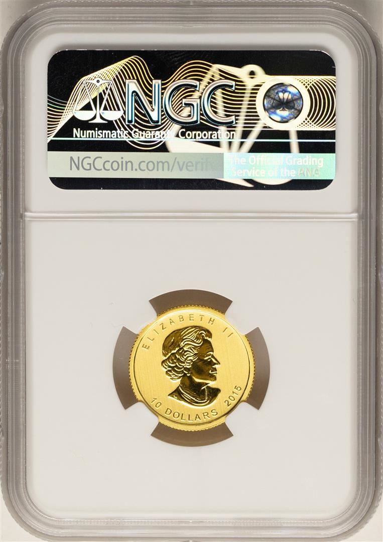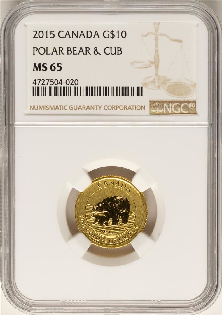One 2015 Canada $10 Polar Bear Gold Coin NGC MS65. NGC Certified.