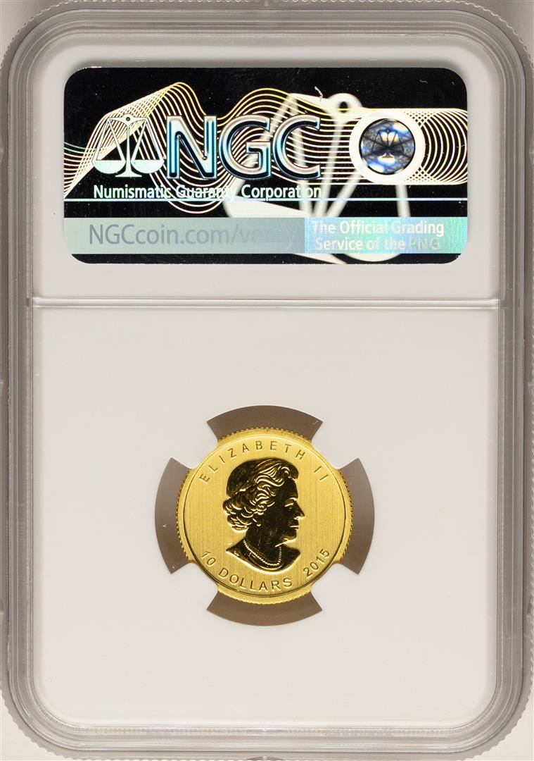 One 2015 Canada $10 Polar Bear Gold Coin NGC MS67. NGC Certified.