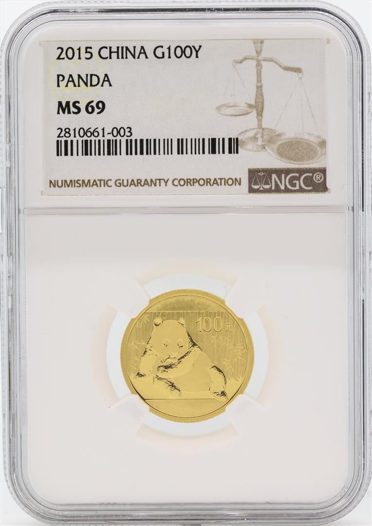 One 2015 China 100 Yuan Panda Gold Coin NGC MS69. NGC Certified.