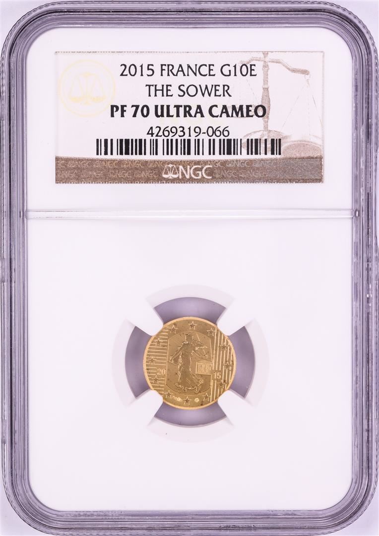 One 2015 France 10 Euro Proof Gold Coin The Sower NGC PF70 Ultra Cameo . NGC Certified.