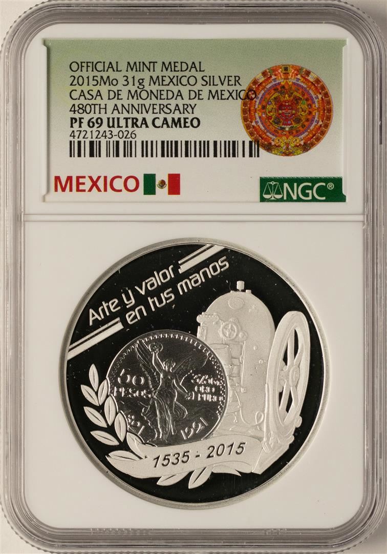 One 2015 Mexico Silver Mint Medal Casa De Moneda NGC PF69 Ultra Cameo. NGC Certified.