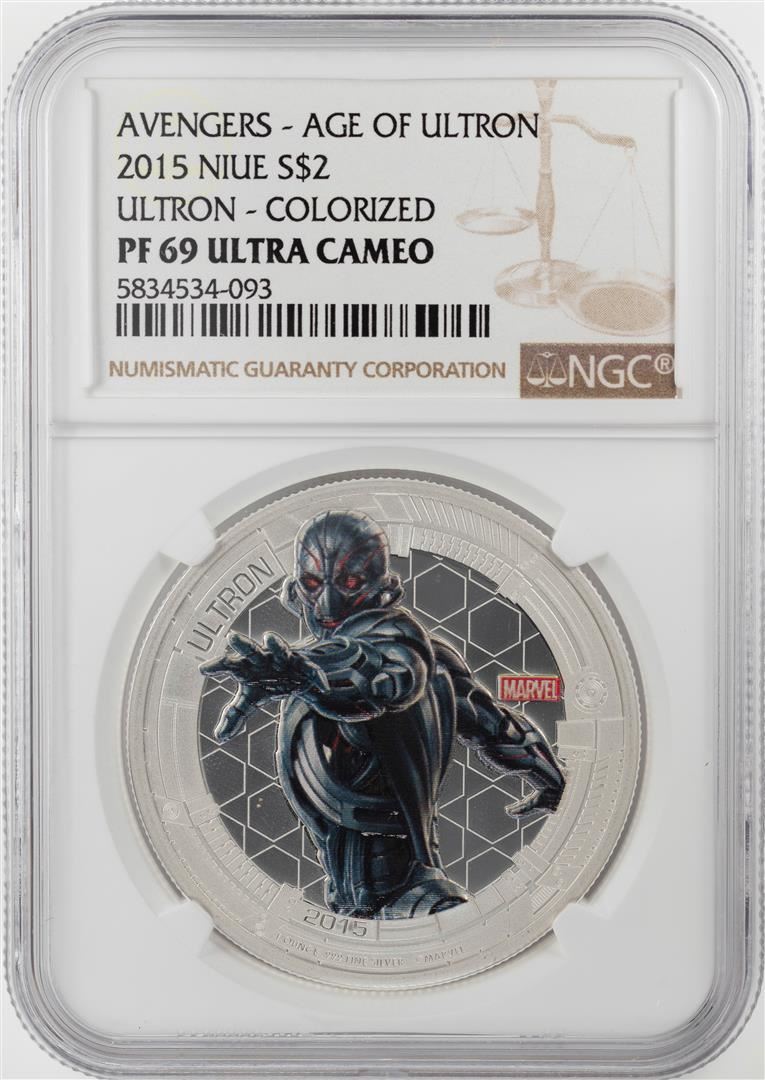 One 2015 Niue $2 Proof Avengers Age of Ultron Silver Coin NGC PF69 Ultra Cameo. NGC Certified.