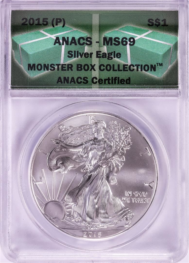 One 2015 (P) $1 American Silver Eagle Coin ANACS MS69. ANACS Certified.