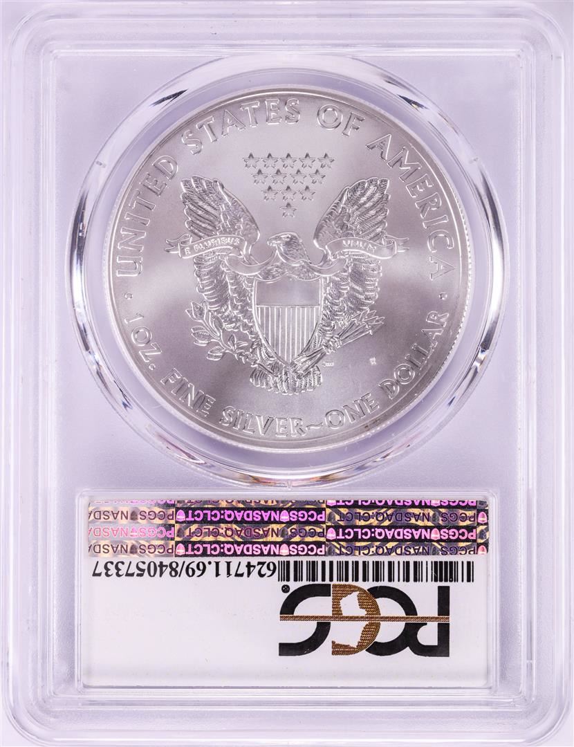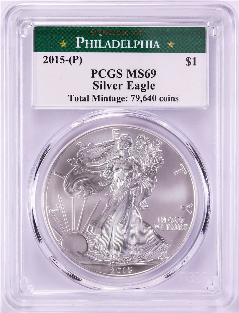 One 2015-(P) $1 American Silver Eagle Coin PCGS MS69 Struck at Philadelphia.
