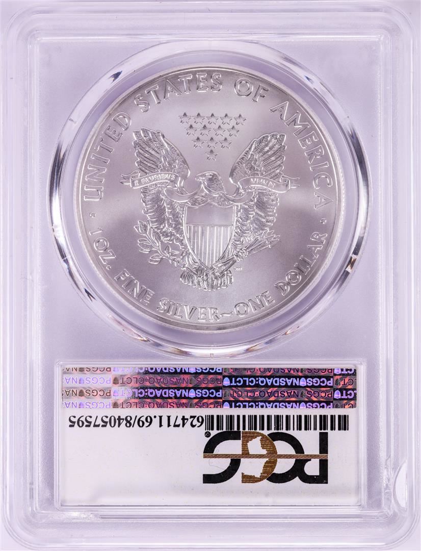 One 2015-(P) $1 American Silver Eagle Coin PCGS MS69 Struck at Philadelphia.