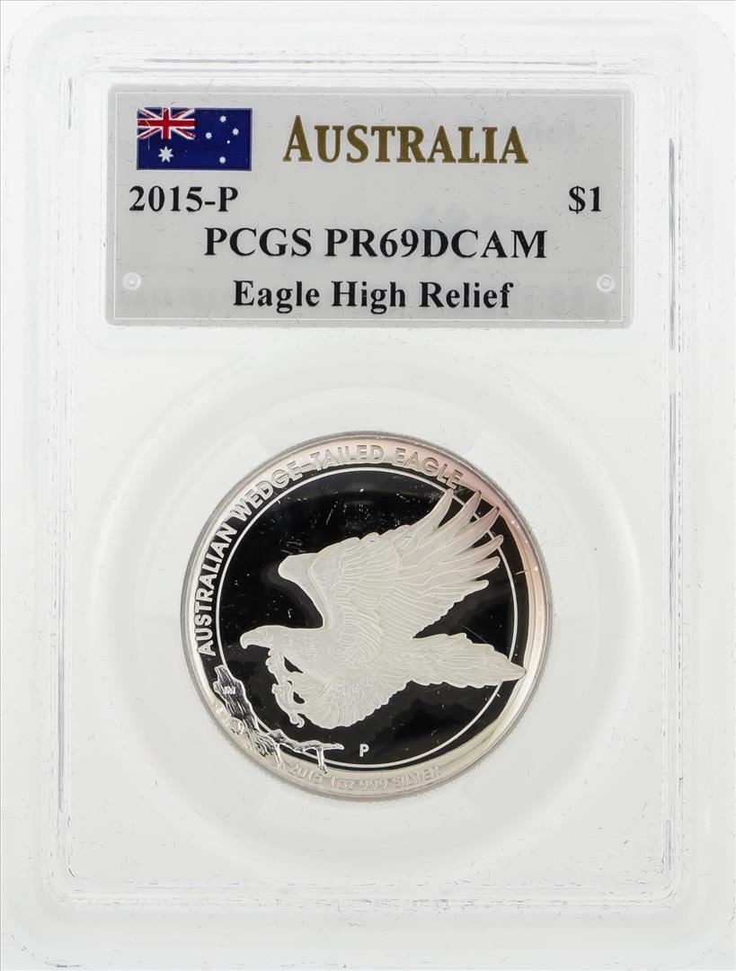One 2015-P $1 Australia Eagle High Relief Silver Coin PCGS PR69DCAM.