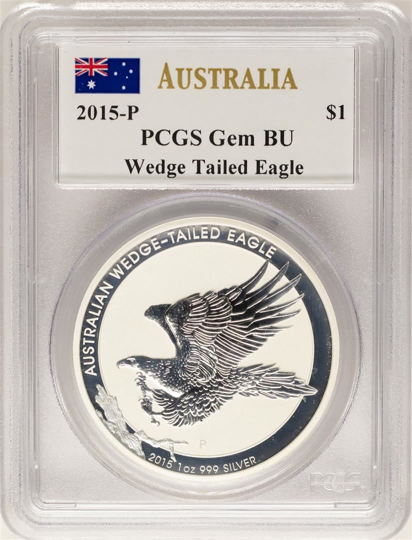 One 2015-P $1 Australia Wedge Tailed Eagle Silver Coin PCGS Gem BU. PCGS Graded.