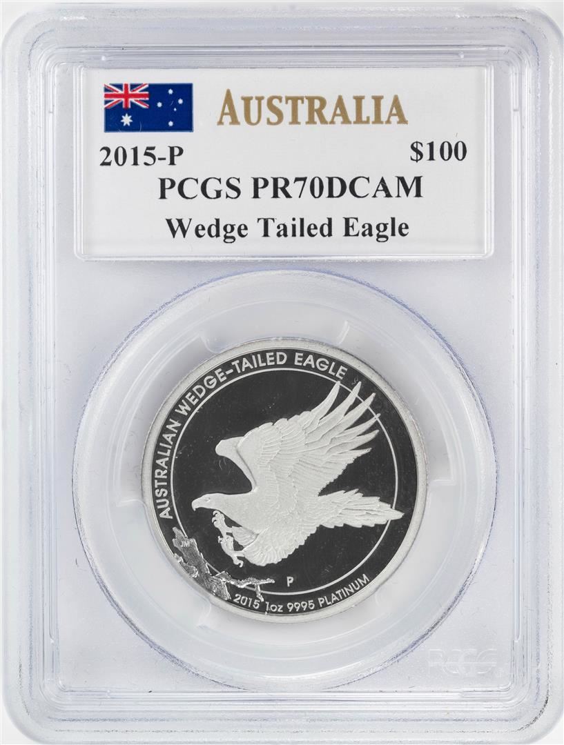 One 2015-P $100 Australian Wedge Tailed Eagle Platinum Coin PCGS PR70DCAM. PCGS Graded.