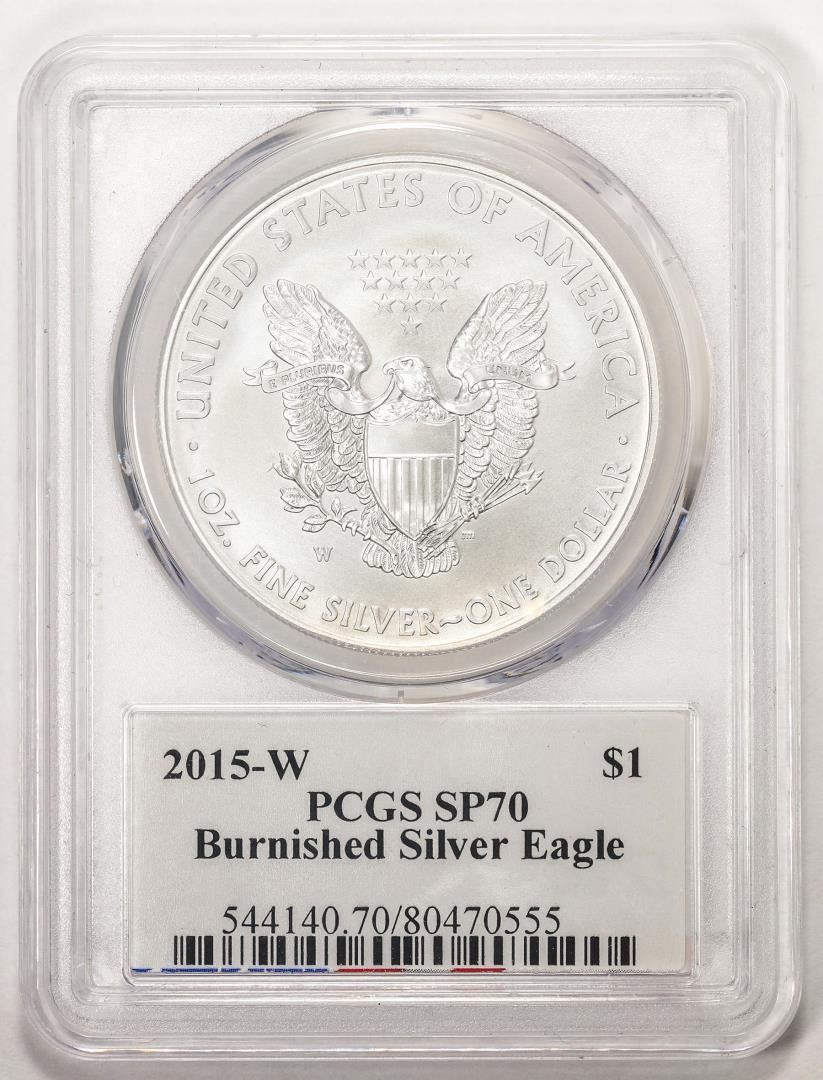 One 2015-W $1 Burnished American Silver Eagle Coin PCGS SP70 Edmund C. Moy Signature. PCGS Graded.