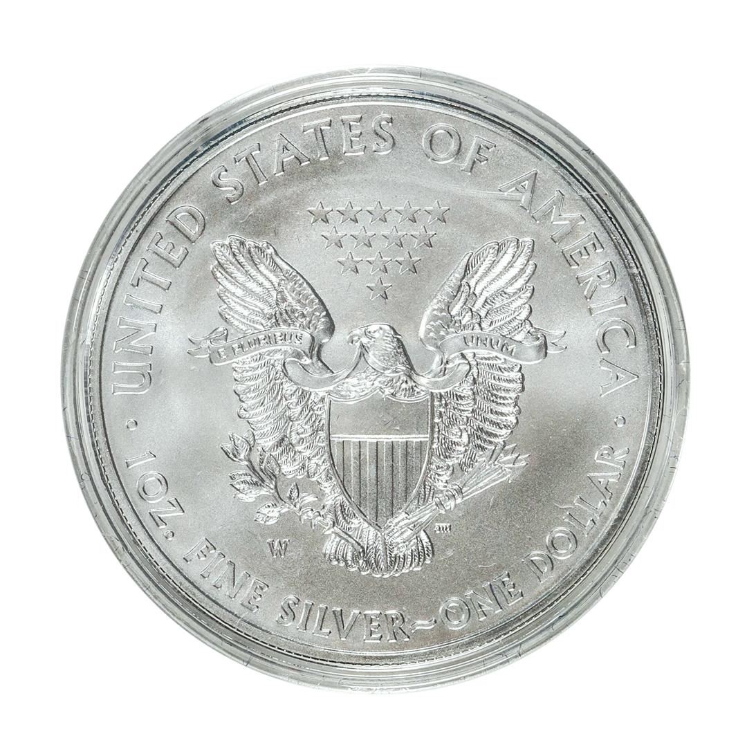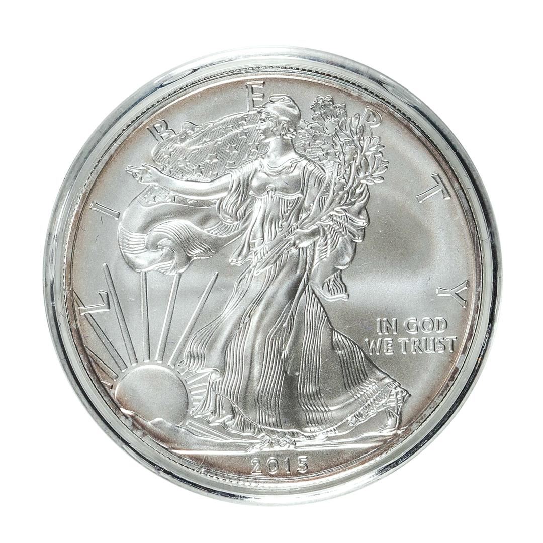 One 2015-W $1 Burnished American Silver Eagle Coin.