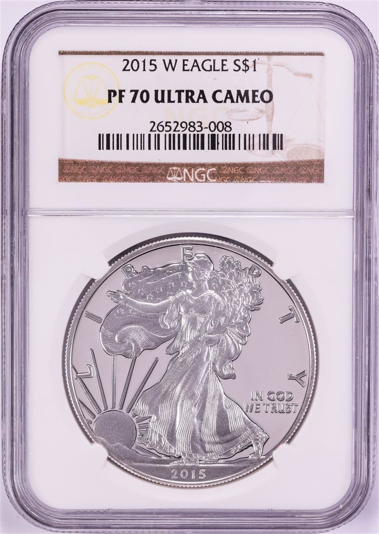 One 2015-W $1 Proof American Silver Eagle Coin NGC PF70 Ultra Cameo. NGC Certified.