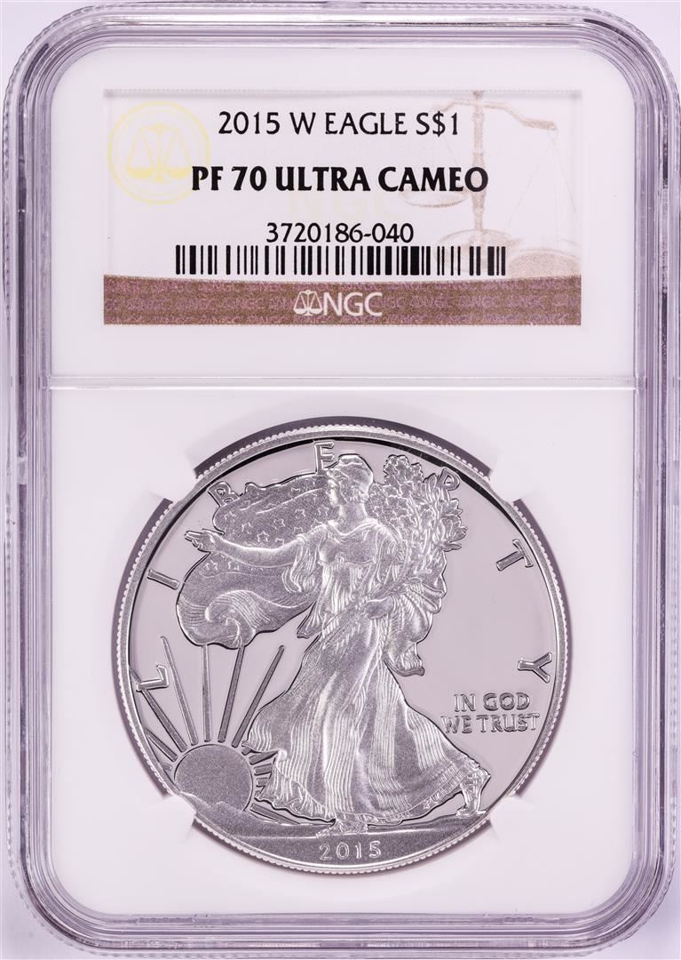 One 2015-W $1 Proof American Silver Eagle Coin NGC PF70 Ultra Cameo. NGC Certified.