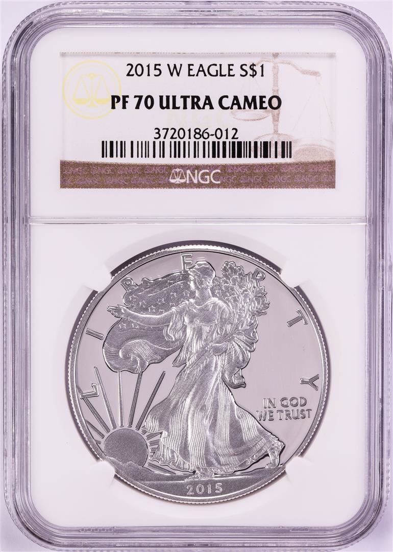 One 2015-W $1 Proof American Silver Eagle Coin NGC PF70 Ultra Cameo. NGC Certified.