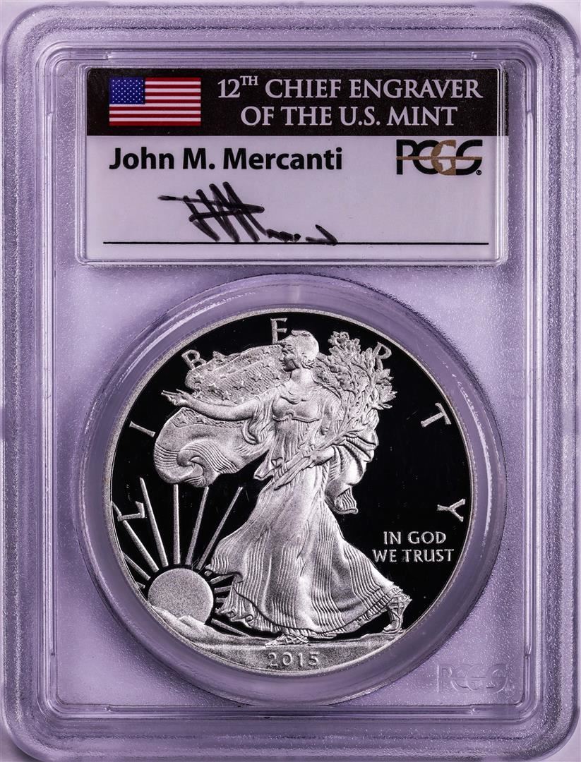 2015-W $1 Proof American Silver Eagle Coin PCGS PR70DCAM FDOI Mercanti Signature