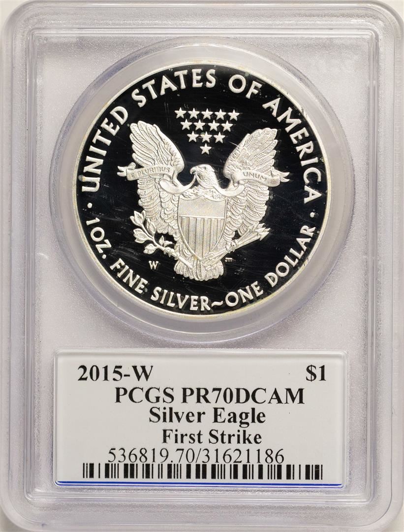 2015-W $1 Proof American Silver Eagle Coin PCGS PR70DCAM W/Miles Standish Signat
