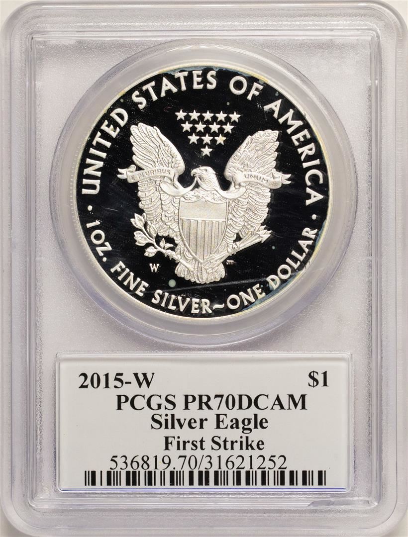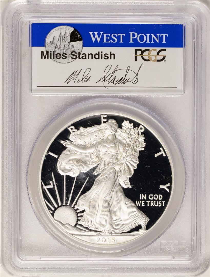 2015-W $1 Proof American Silver Eagle Coin PCGS PR70DCAM W/Miles Standish Signature