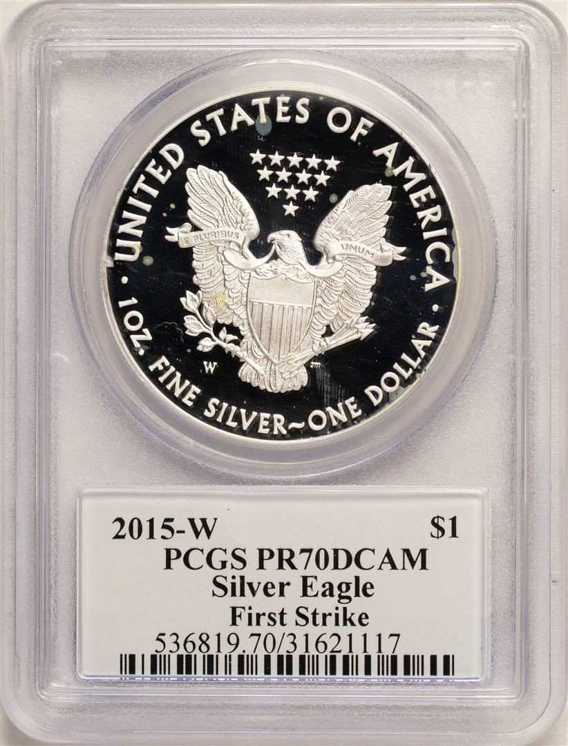 One 2015-W $1 Proof American Silver Eagle Coin PCGS PR70DCAM W/Miles Standish Signature. PCGS Graded.