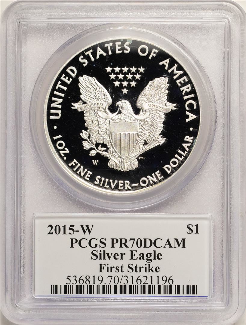One 2015-W $1 Proof American Silver Eagle Coin PCGS PR70DCAM W/Miles Standish Signature. PCGS Graded.