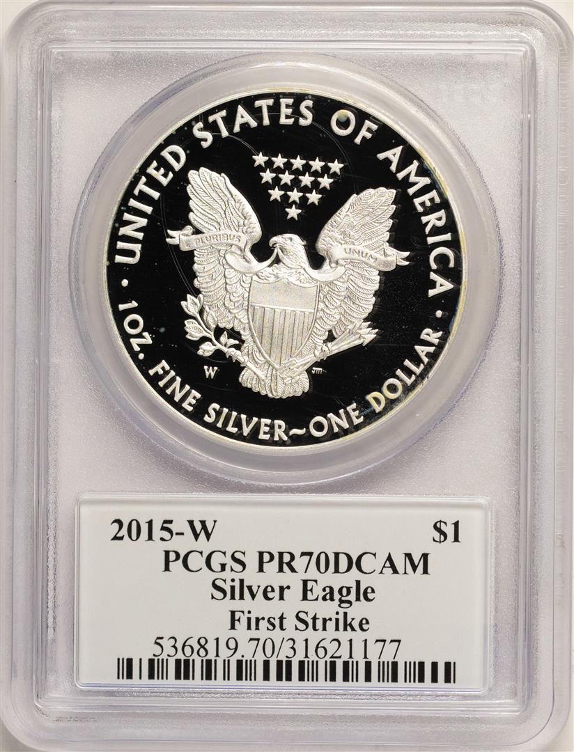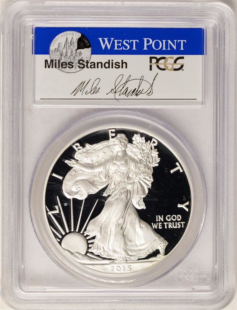 2015-W $1 Proof American Silver Eagle Coin PCGS PR70DCAM W/Miles Standish Signature