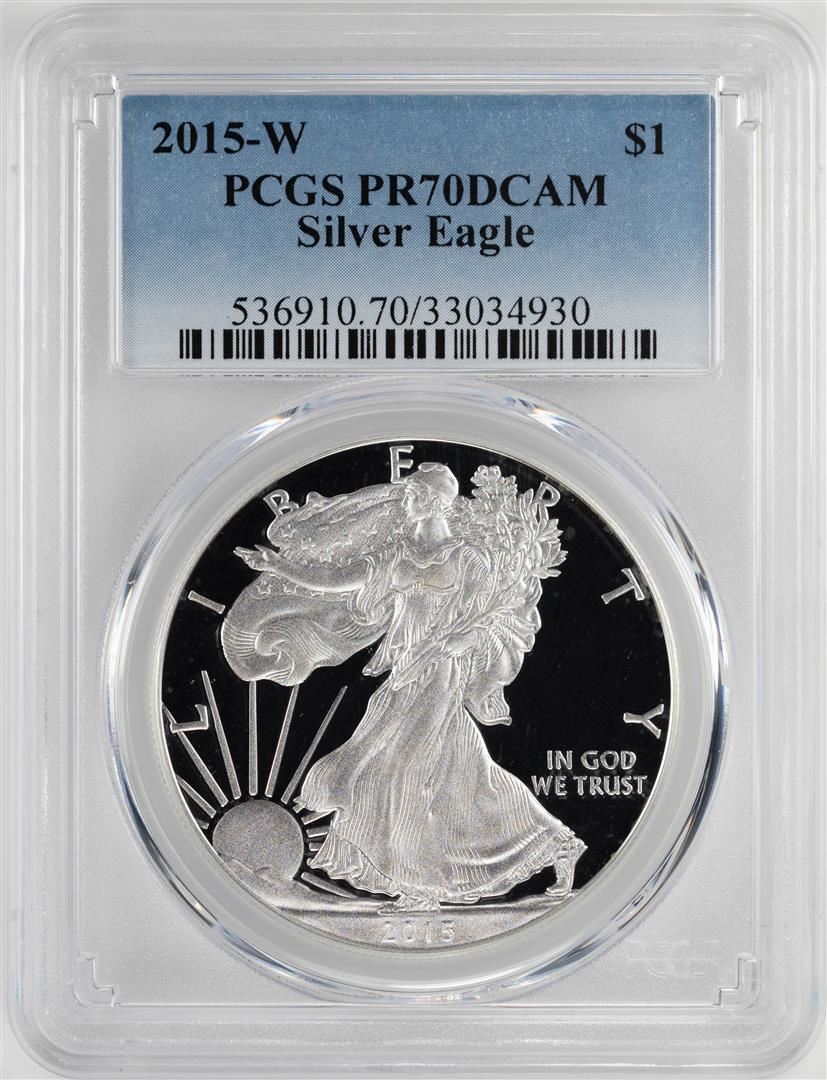 One 2015-W $1 Proof American Silver Eagle Coin PCGS PR70DCAM. PCGS Graded.