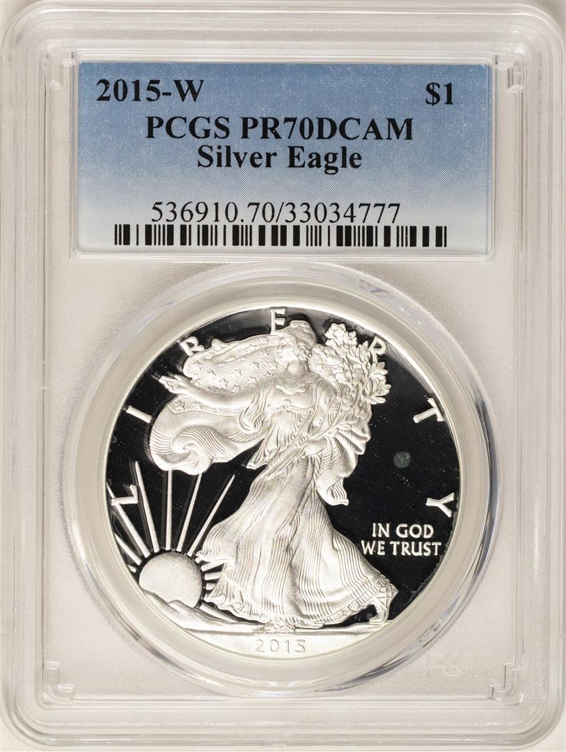 One 2015-W $1 Proof American Silver Eagle Coin PCGS PR70DCAM. PCGS Graded.