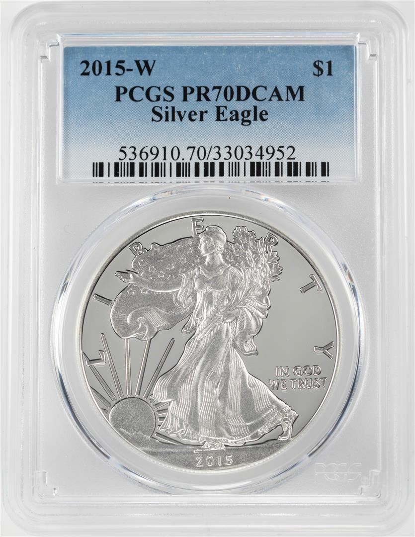 One 2015-W $1 Proof American Silver Eagle Coin PCGS PR70DCAM. PCGS Graded.