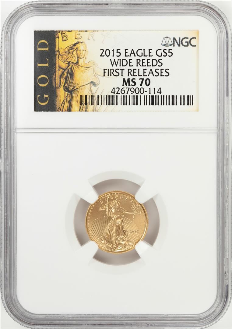 2015 Wide Reeds $5 American Gold Eagle Coin NGC MS70 First Releases