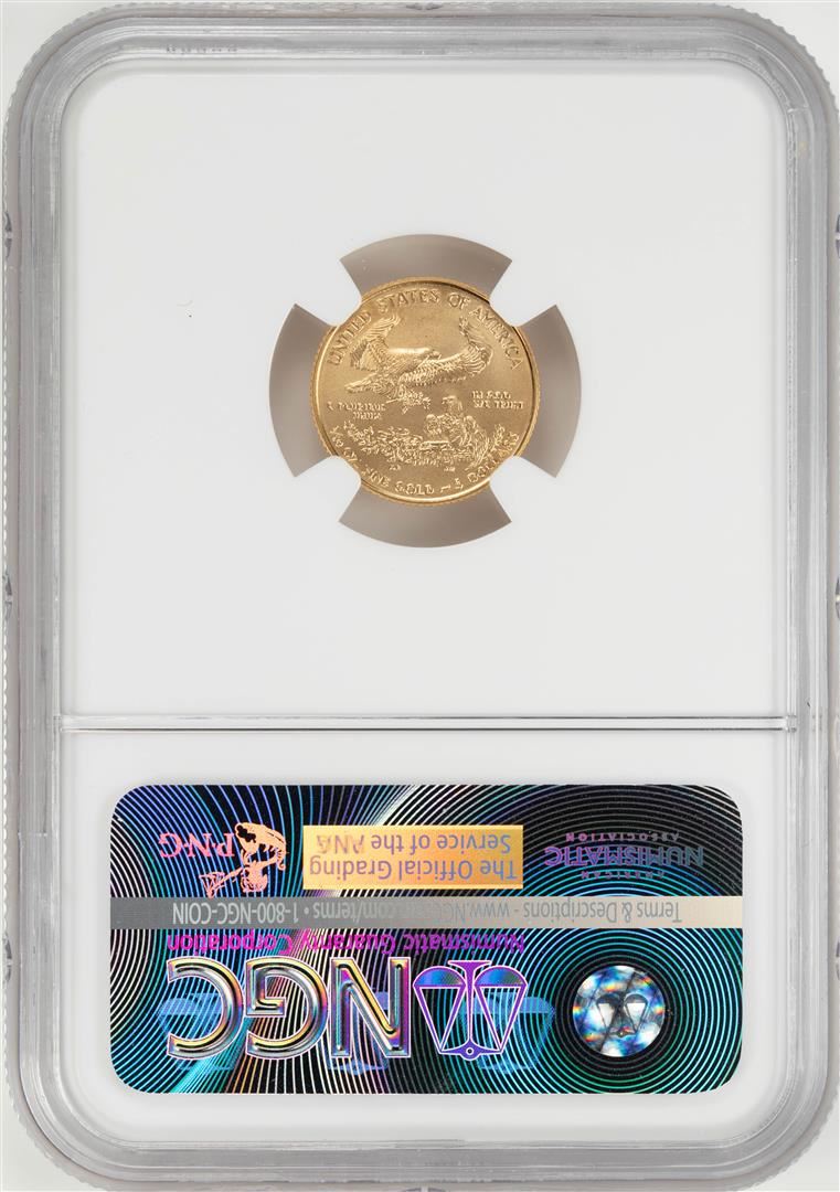 One 2015 Wide Reeds $5 American Gold Eagle Coin NGC MS70 First Releases. NGC Certified.