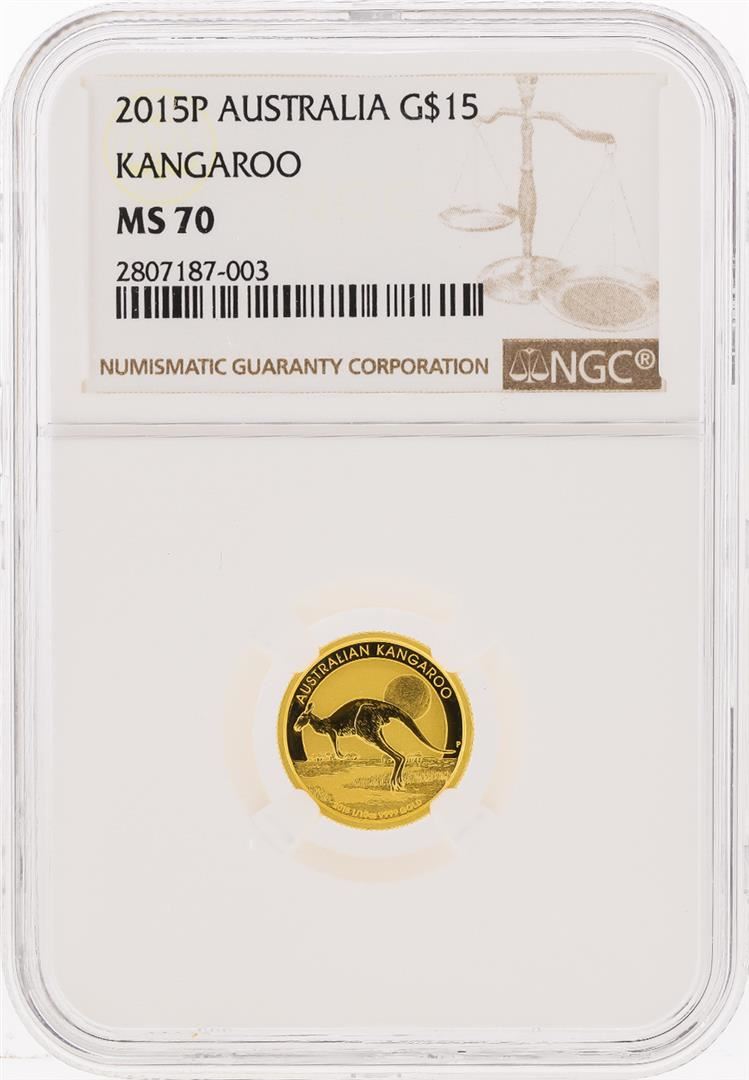 One 2015P $15 Australia Kangaroo Gold Coin NGC MS70. NGC Certified.