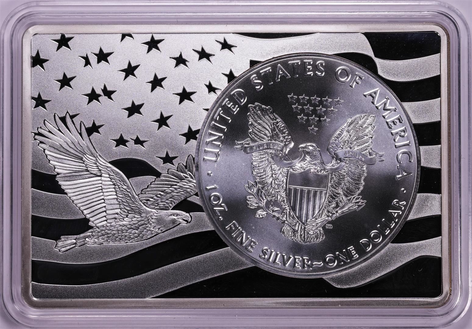 One 2016 $1 American Silver Eagle Coin & 2oz Silver Bar Set.