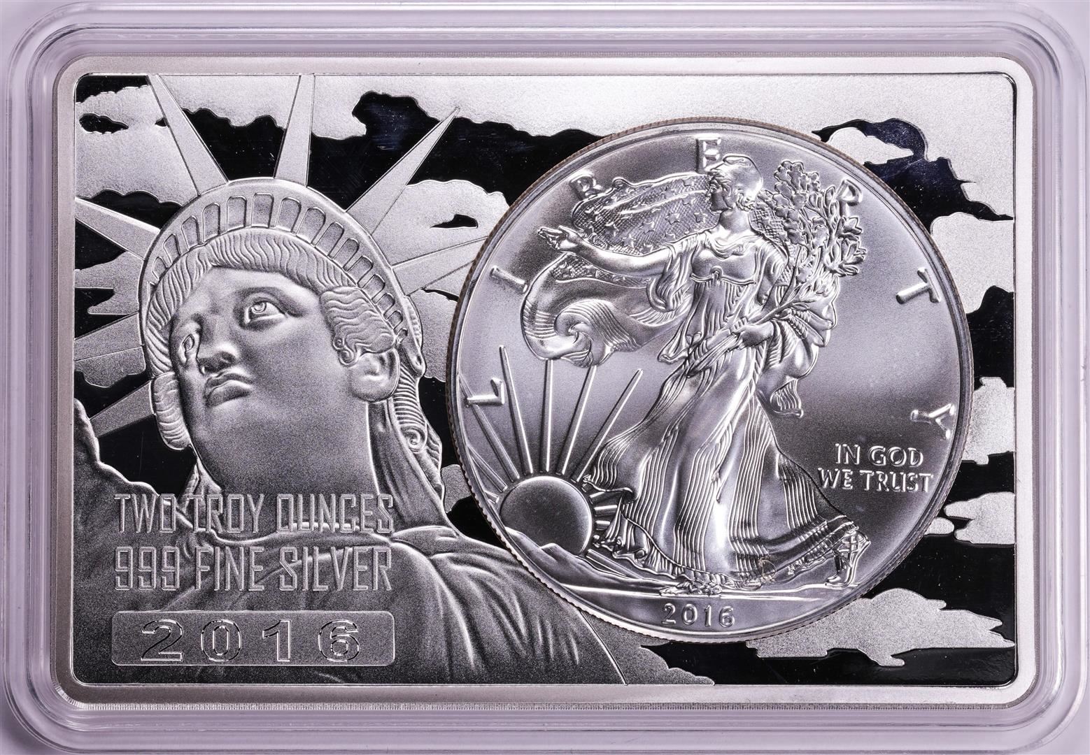 One 2016 $1 American Silver Eagle Coin & 2oz Silver Bar Set.