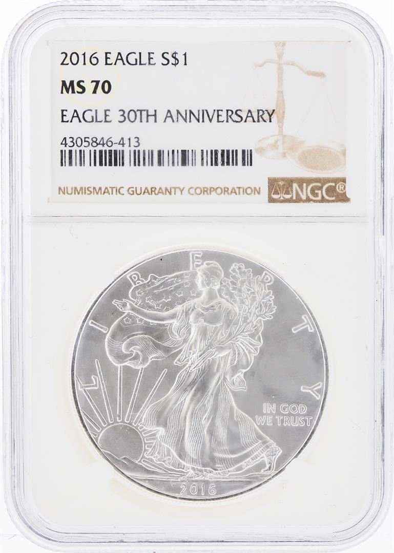 One 2016 $1 American Silver Eagle Coin NGC Graded MS70. NGC Certified.