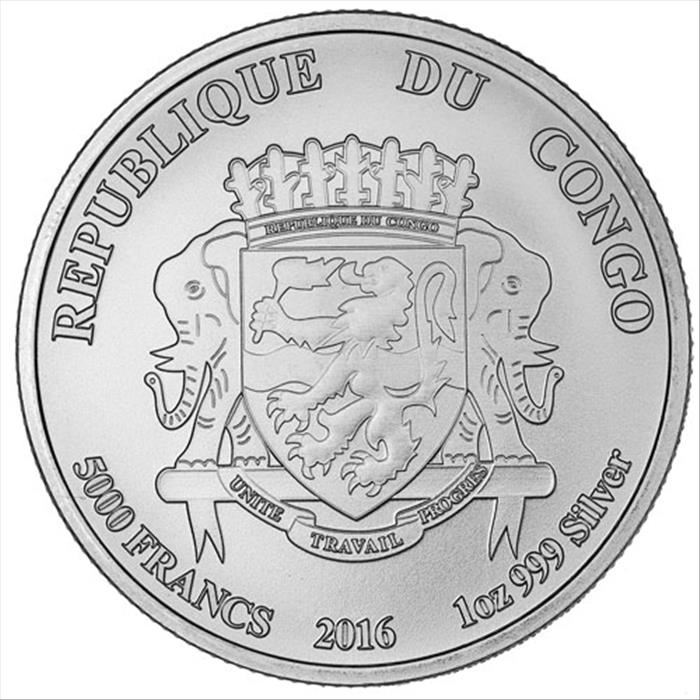 One 2016 1 oz Congo Silver African Lion BU Coin.