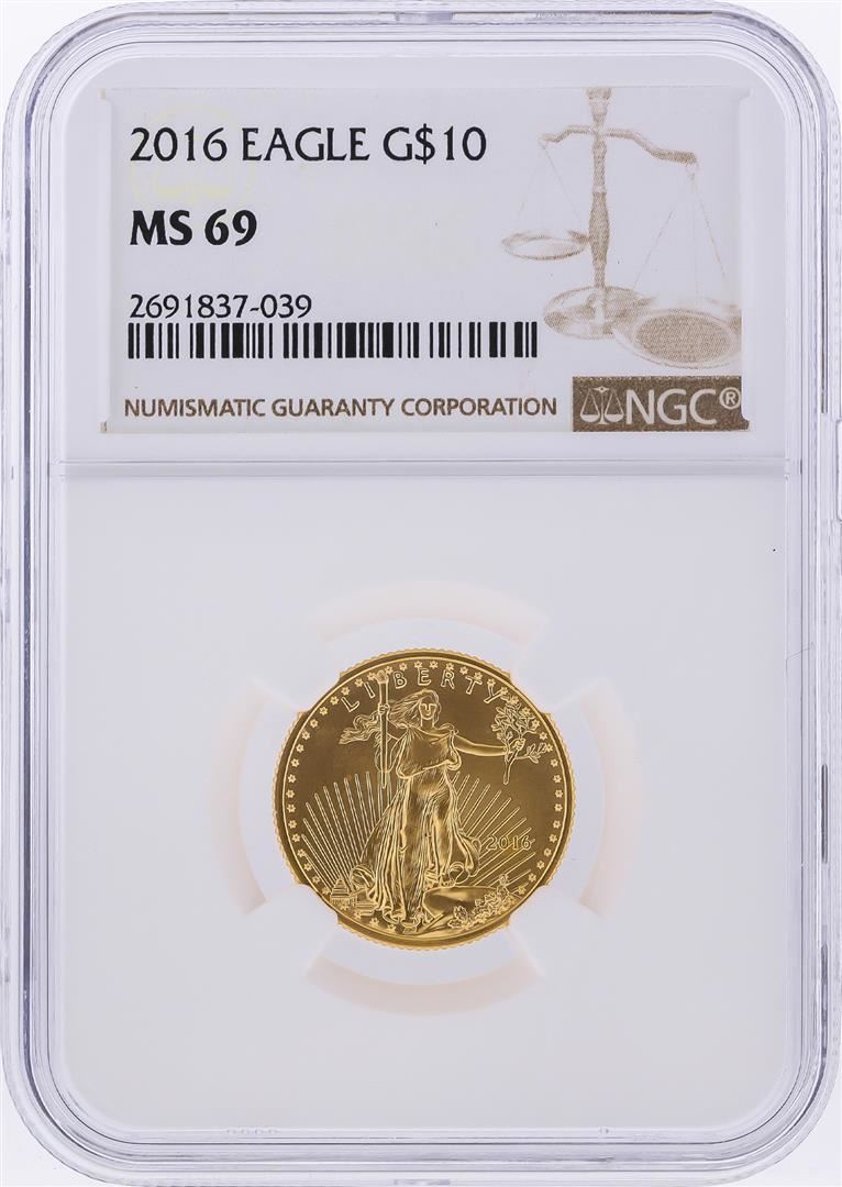 One 2016 $10 American Gold Eagle Coin NGC Graded MS69. NGC Certified.