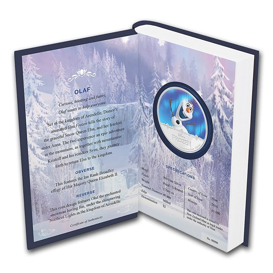 One 2016 $2 Disney Frozen Olaf .999 Fine Silver Proof Coin.