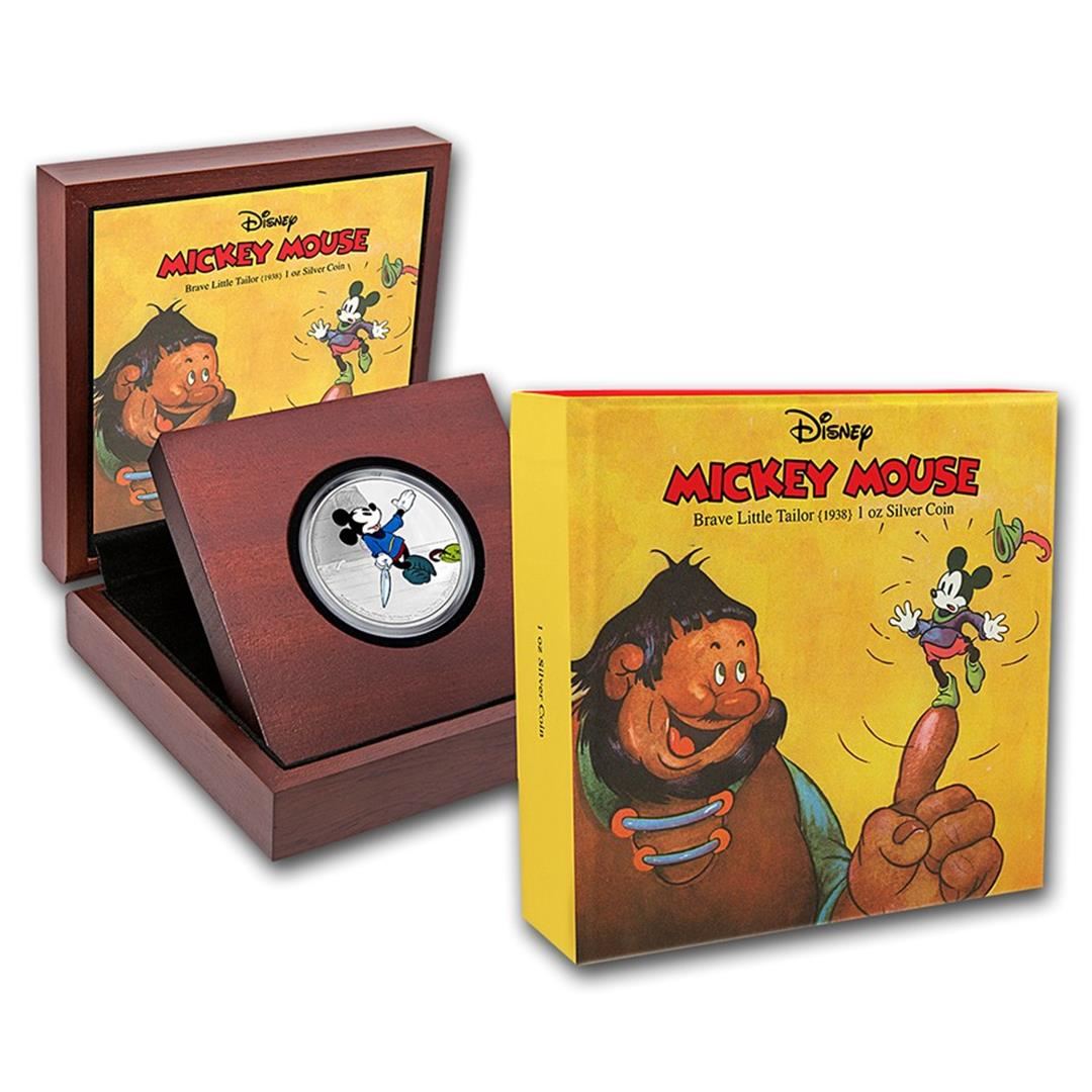 One 2016 $2 Disney Mickey Brave Little Tailor .999 Fine Silver Proof Coin.