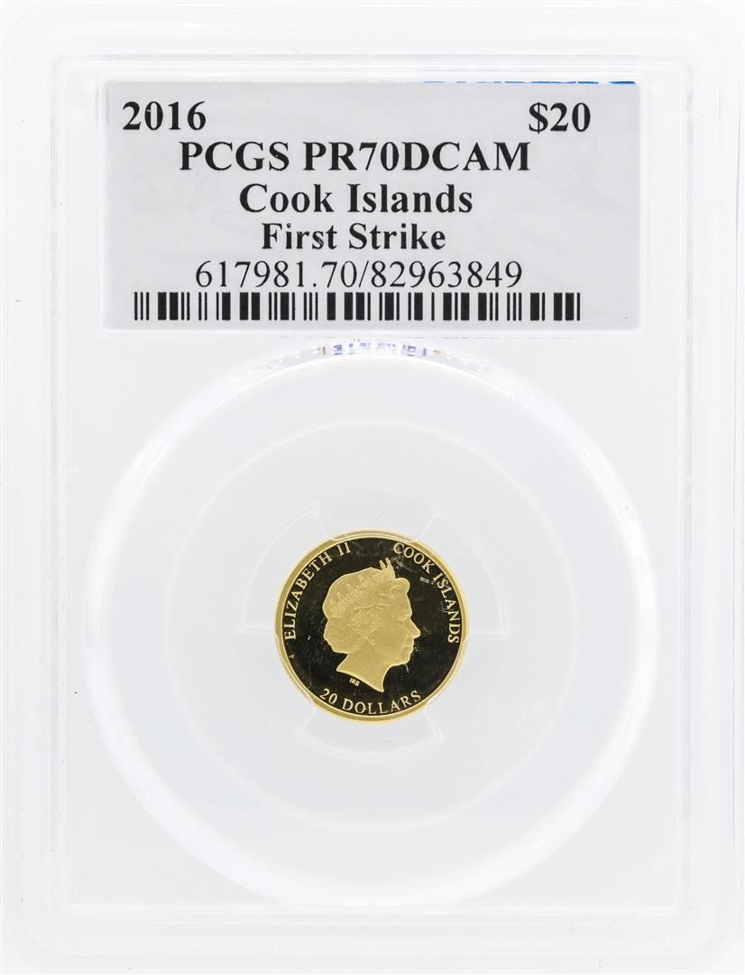 One 2016 $20 Cook Islands Gold Coin PCGS PR70DCAM First Strike Reagan Legacy. PCGS Graded.
