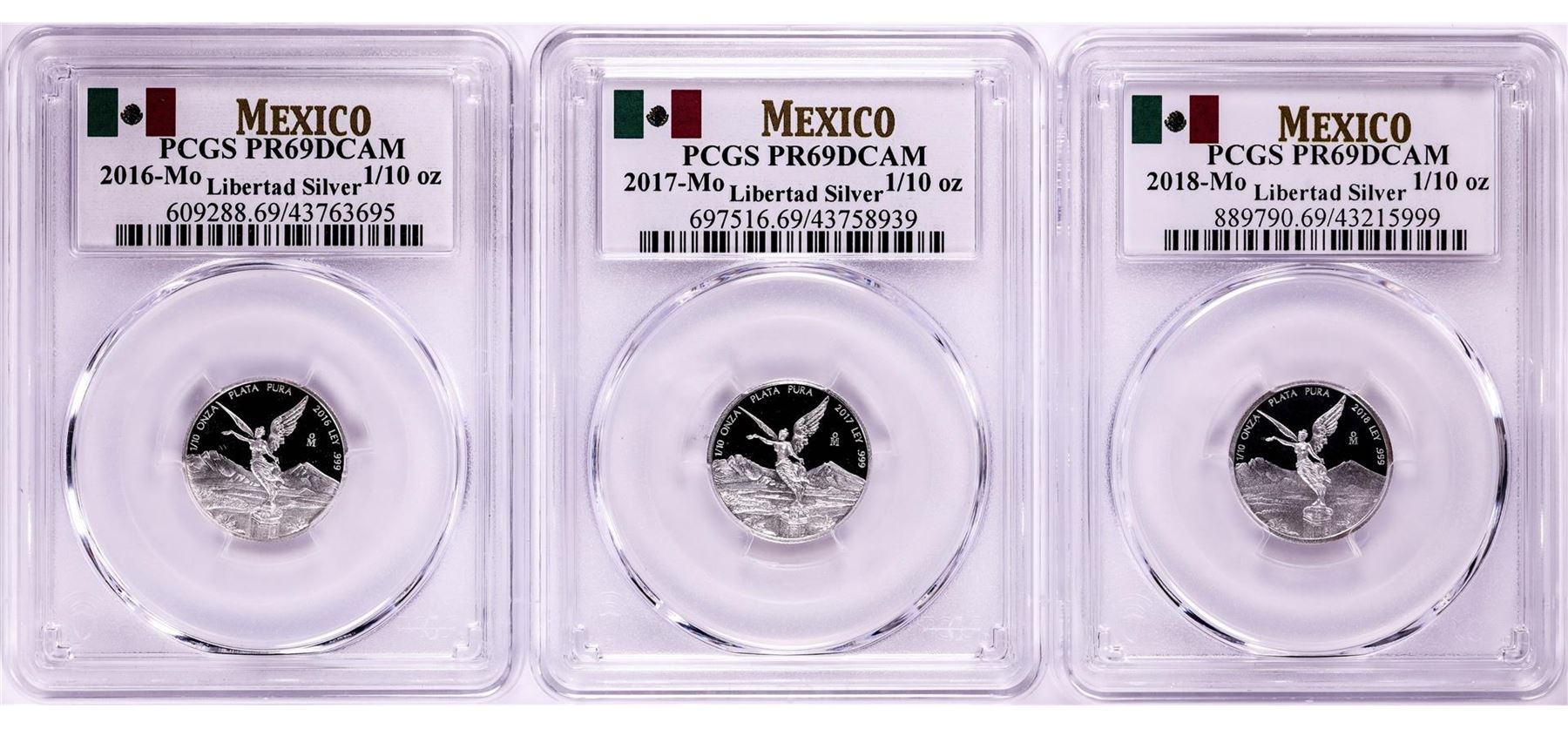 2016-2018-Mo Mexico Proof 1/10 oz Silver Libertad Coins PCGS PR69DCAM