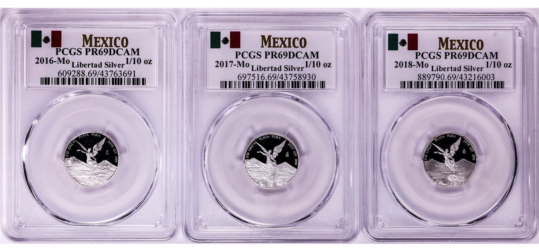 2016-2018-Mo Mexico Proof 1/10 oz Silver Libertad Coins PCGS PR69DCAM
