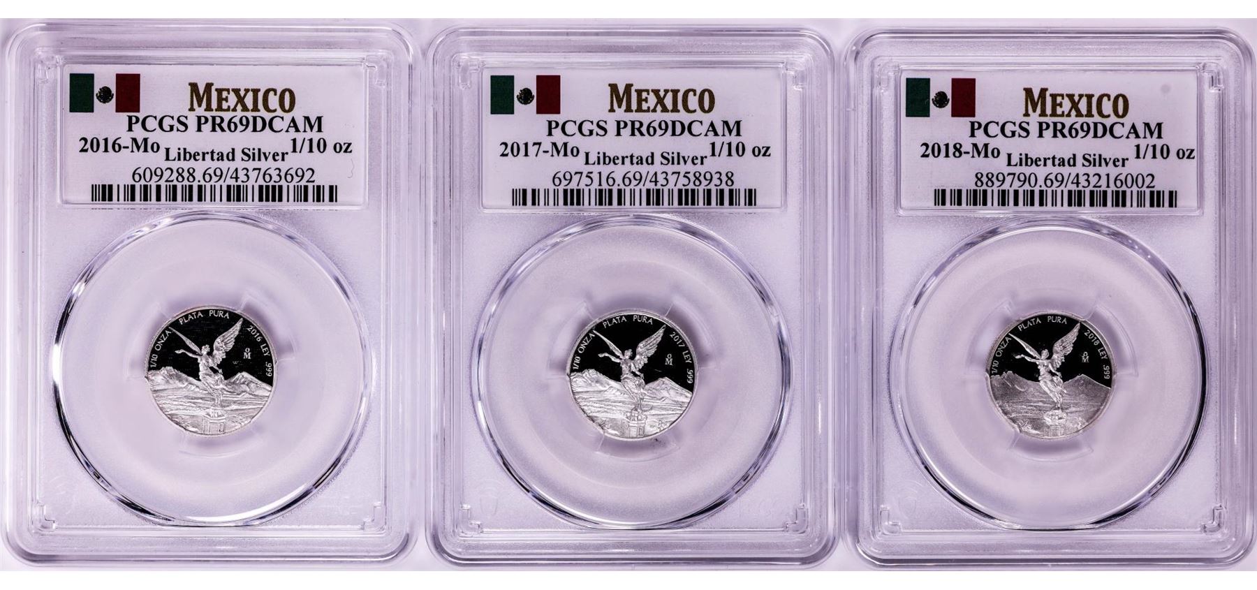 2016-2018-Mo Mexico Proof 1/10 oz Silver Libertad Coins PCGS PR69DCAM