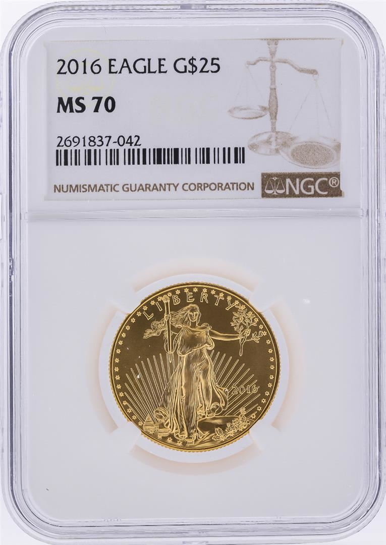 One 2016 $25 American Gold Eagle Coin NGC Graded MS70. NGC Certified.