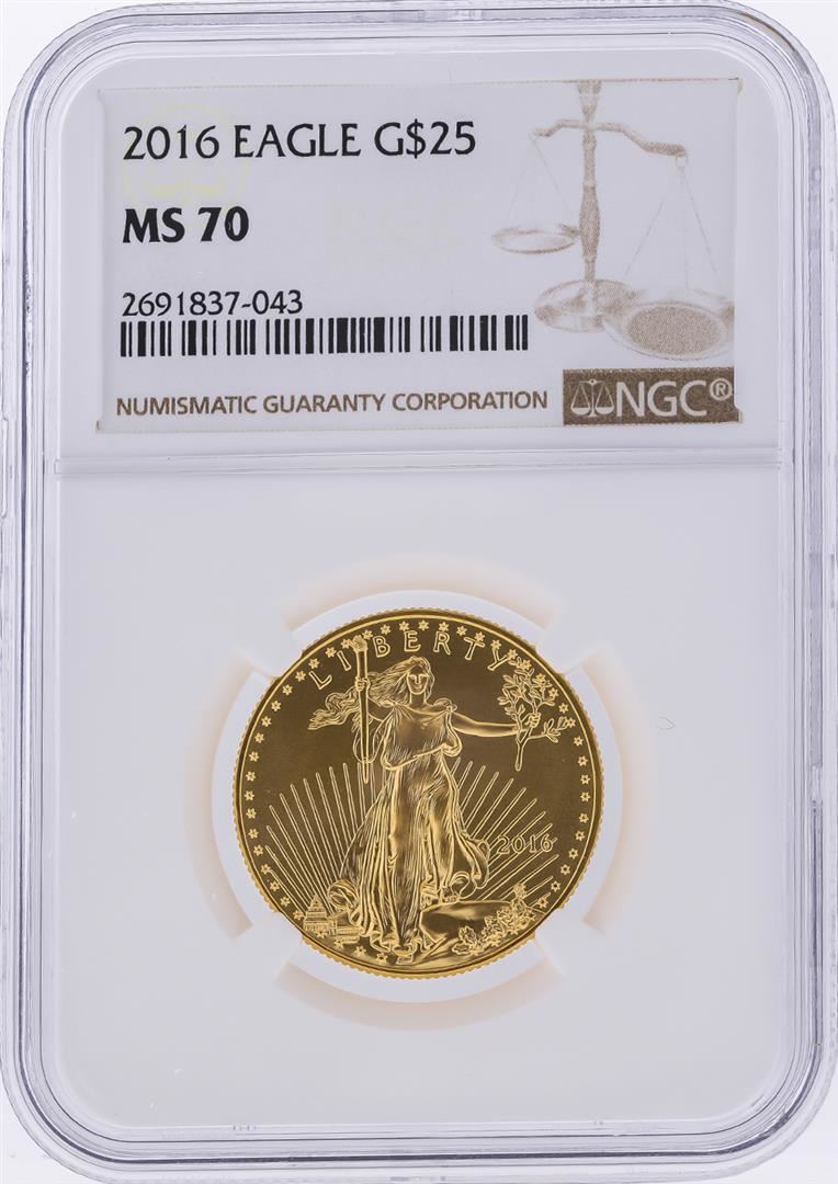 One 2016 $25 American Gold Eagle Coin NGC Graded MS70. NGC Certified.