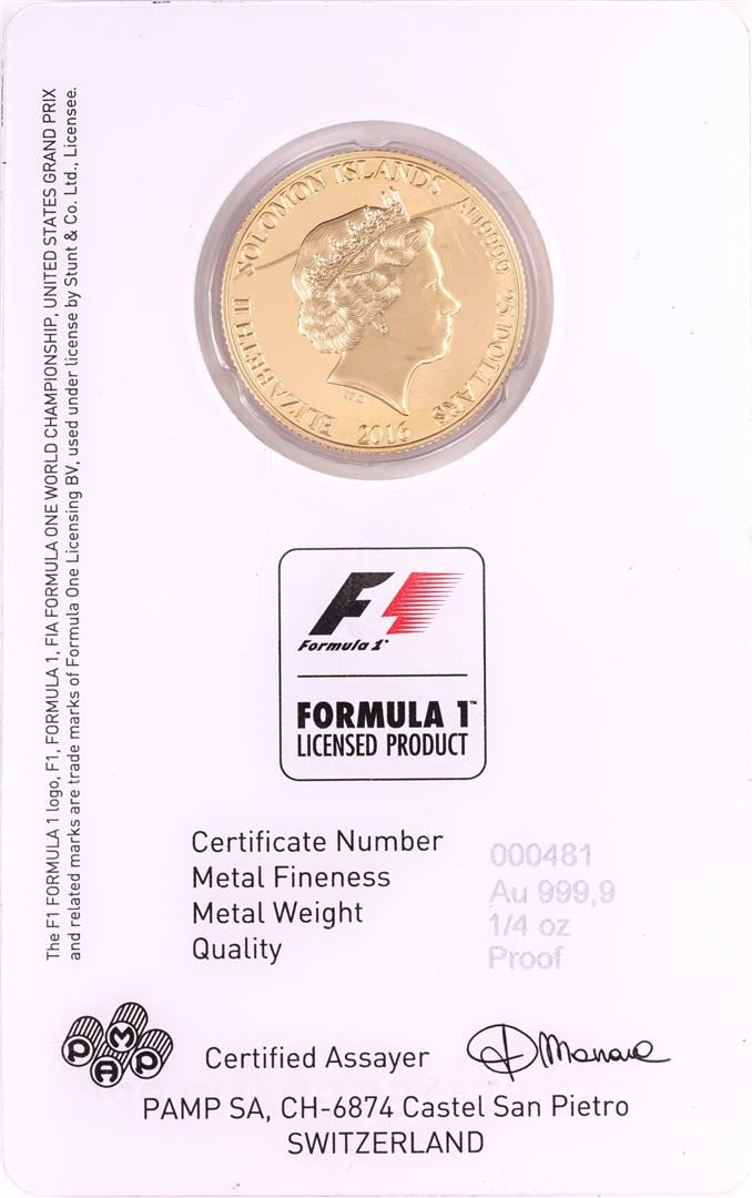 One 2016 $25 Proof Solomon Islands Formula One United States Grand Prix Gold Coin.