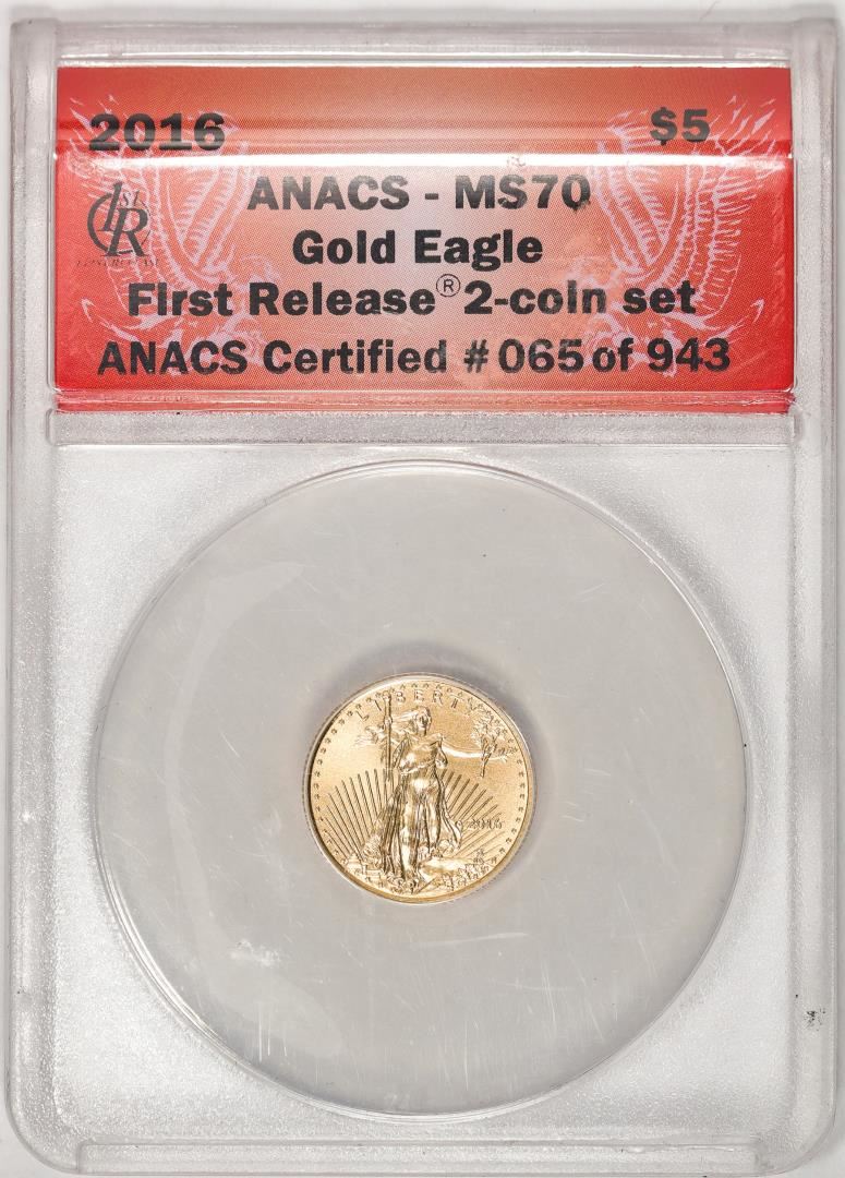2016 $5 American Gold Eagle Coin ANACS MS70 First Release
