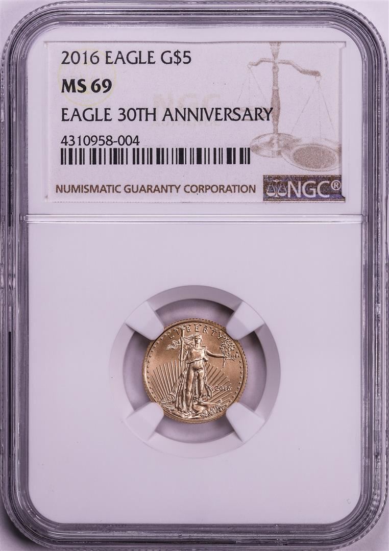 One 2016 $5 American Gold Eagle Coin NGC MS69. NGC Certified.