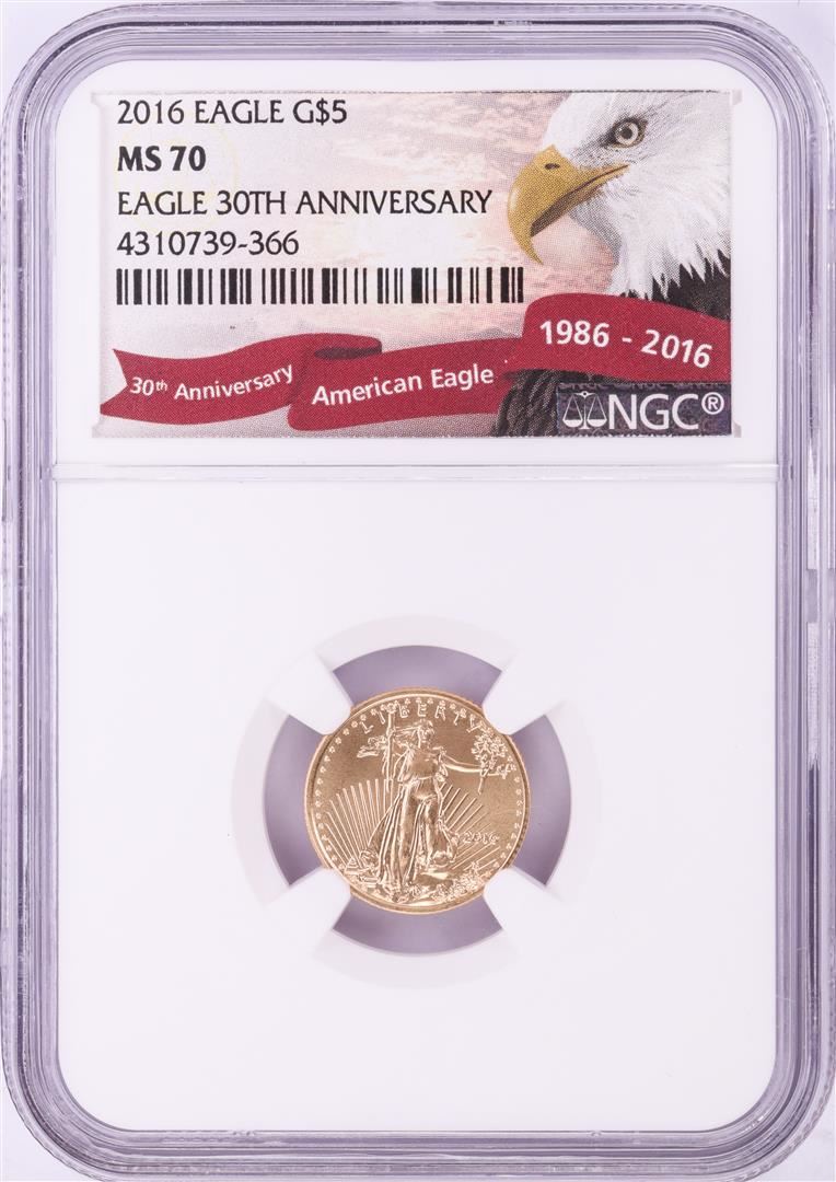 One 2016 $5 American Gold Eagle Coin NGC MS70. NGC Certified.