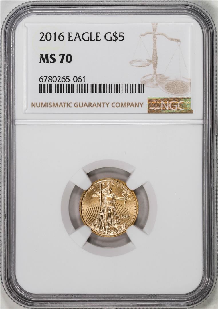 One 2016 $5 American Gold Eagle Coin NGC MS70. NGC Certified.