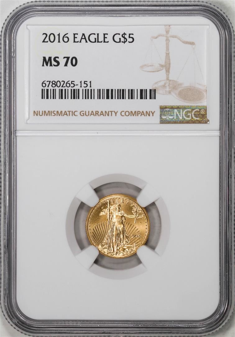 One 2016 $5 American Gold Eagle Coin NGC MS70. NGC Certified.