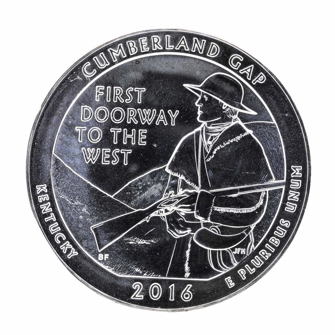 One 2016 5oz Silver ATB Cumberland Gap Kentucky Silver Coin.